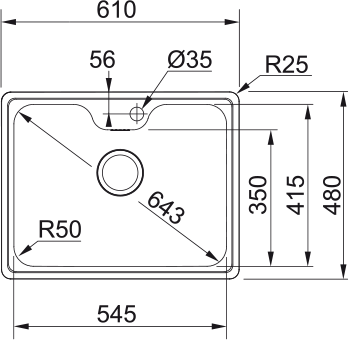 Νεροχύτης κουζίνας ένθετος Inox Franke Bell BCX 610-61 61x48cm – 101.0634.570