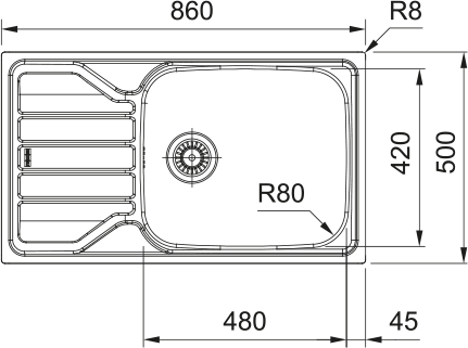Ανοξείδωτος νεροχύτης Flash FLX 611-86/50 3 860x500mm, 1 γούρνα και ποδιά, ένθετη τοποθέτηση, περιλαμβάνει σιφόνια και βαλβίδες.