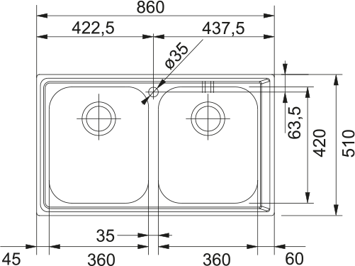 • Τύπος νεροχύτη: Bowl (χωρίς ποδιά)