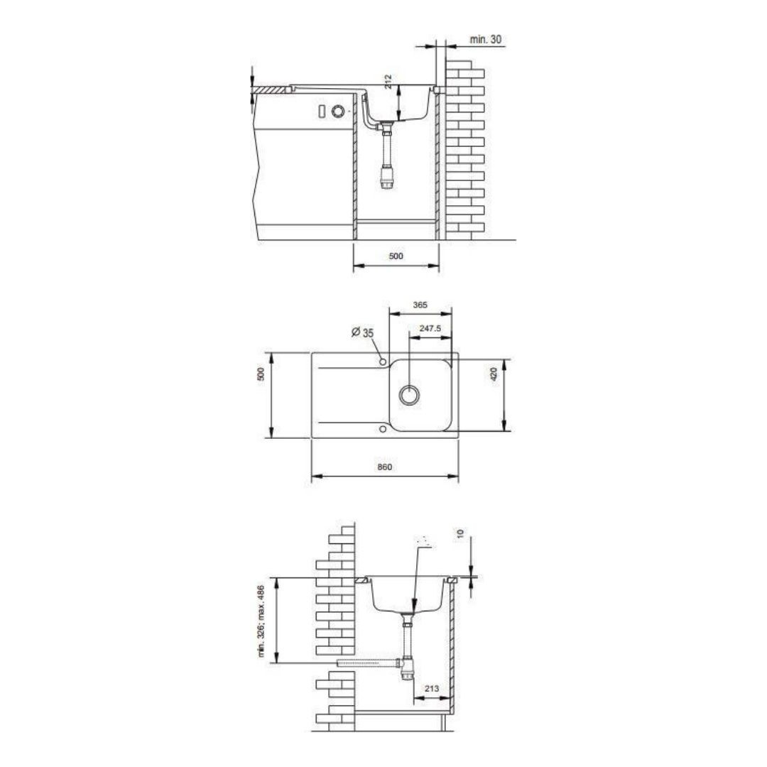 Διάσταση Νεροχύτη: 86 x 50 εκ.