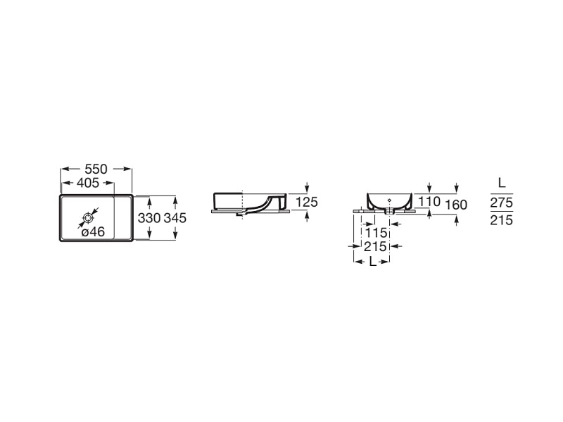 Νιπτήρας Roca Ona 55x35cm ελεύθερης τοποθέτησης black matt