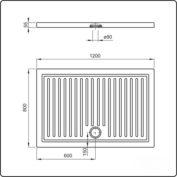 Ντουζιέρα πορσελάνης Roca 120x80x5,5 Roma παραλληλόγραμμη
