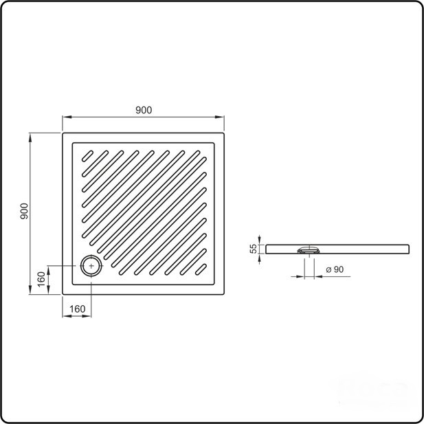 Ντουζιέρα πορσελάνης Roca 90x90x5,5 Roma τετράγωνη