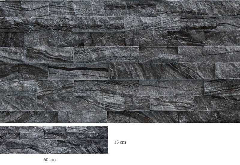 Το πάνελ Κρίσταλ-Black αποτελείται από κομμένες λωρίδες πέτρας, οι οποίες είναι κολλημένες μεταξύ τους σχηματίζοντας ένα πλακάκι από φυσικά πετρώματα.