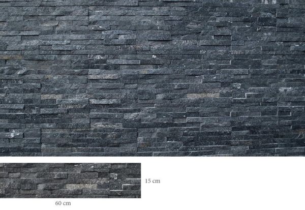Το πάνελ πέτρα Στρας Μαύρο αποτελείται από στενόμακρες κομμένες λωρίδες πέτρας οι οποίες είναι κολλημένες μεταξύ τους σχηματίζοντας ένα πλακάκι από φυσικά πετρώματα.