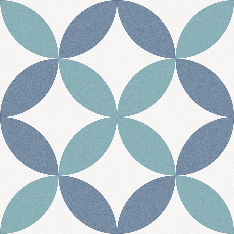 Χρώμα: Γεωμετρικό μοτίβο με καμπύλες σε αποχρώσεις του μπλε, γκρι, μπεζ και λευκού