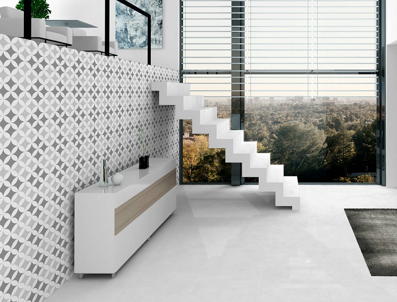 Χρώμα: Συνδυασμός γκρι, λευκού και μπεζ, με γεωμετρικό μοτίβο που παραπέμπει σε παραδοσιακά πλακάκια