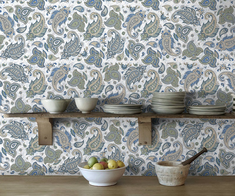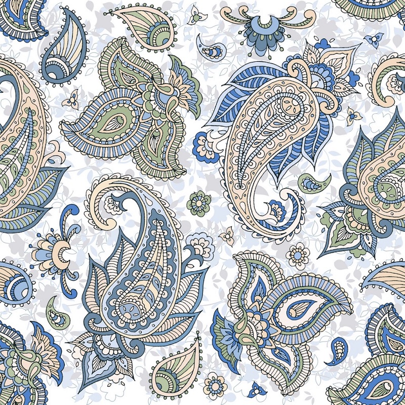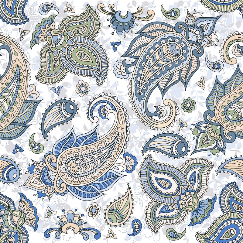 • Χρώμα: Συνδυασμός μπλε, γκρι, μπεζ και λευκό με vintage floral paisley σχέδιο σε καμπύλες γραμμές