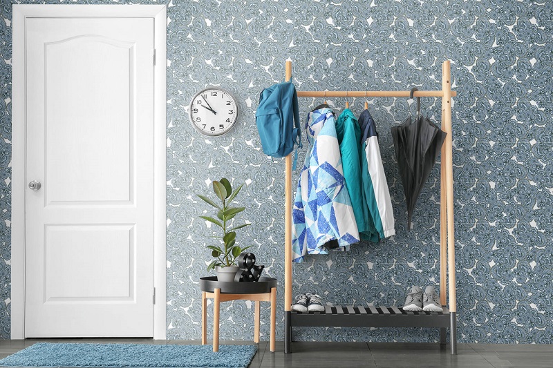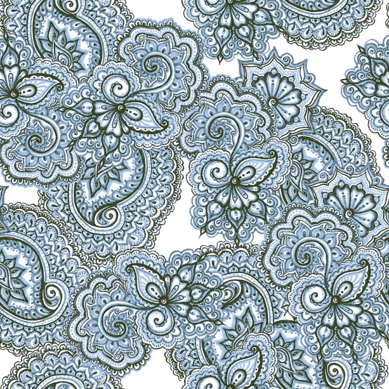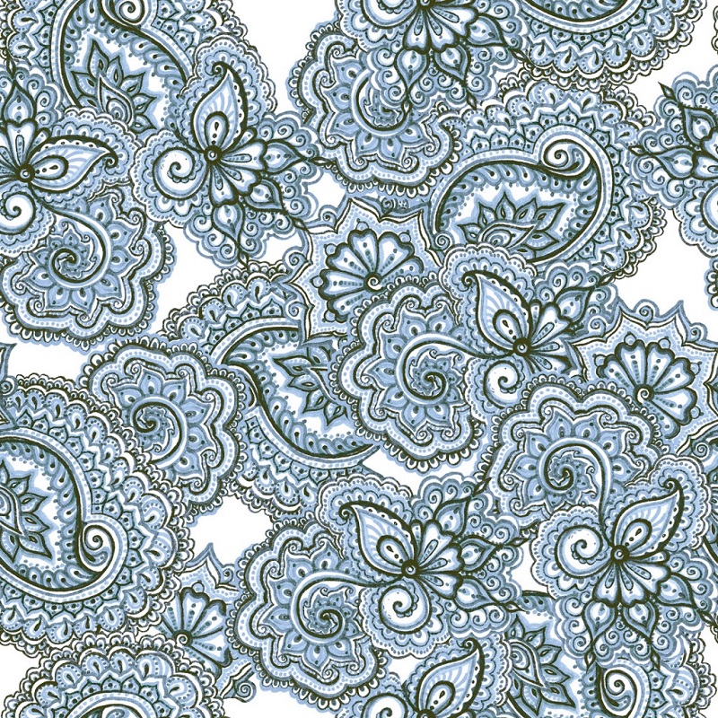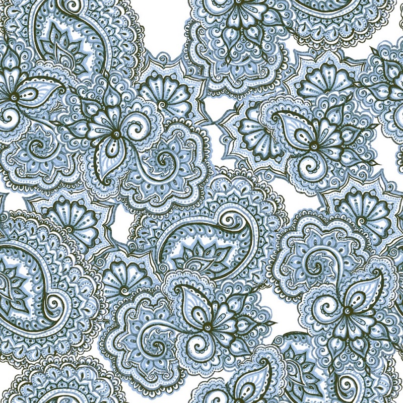 Χρώμα: Συνδυασμός μπλε, γκρι και λευκό με vintage floral paisley σχέδιο σε καμπύλες γραμμές
