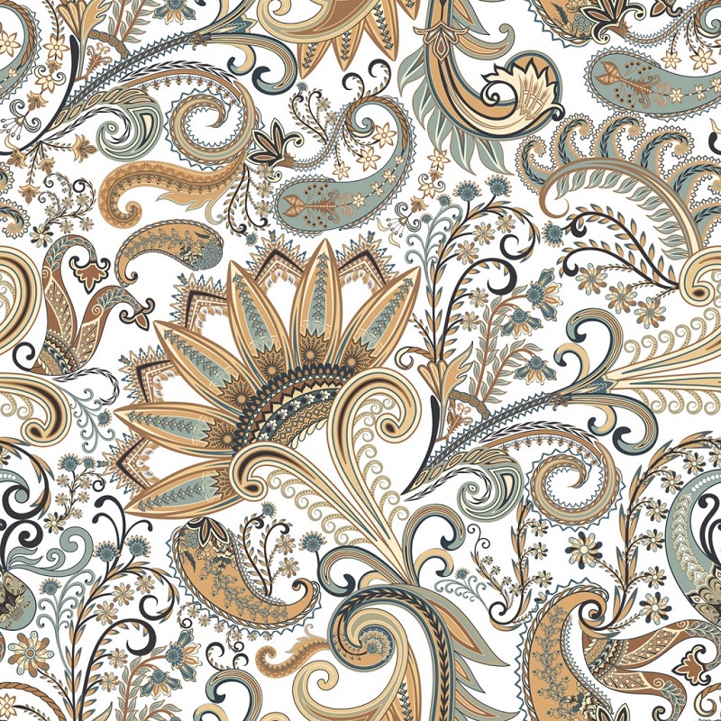 Χρώμα: Συνδυασμός μπλε, γκρι, μπεζ-καφέ και λευκό με vintage floral paisley σχέδιο σε καμπύλες γραμμές