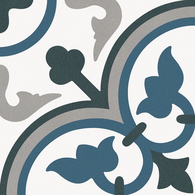 - Χρώμα: Συνδυασμός μπλε και γκρι με γεωμετρικά floral στοιχεία