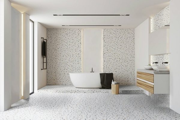 Επιφάνεια: Ματ, terrazzo όψη (με φυσικές πιτσιλιές σε γκρι-μπεζ τόνους)