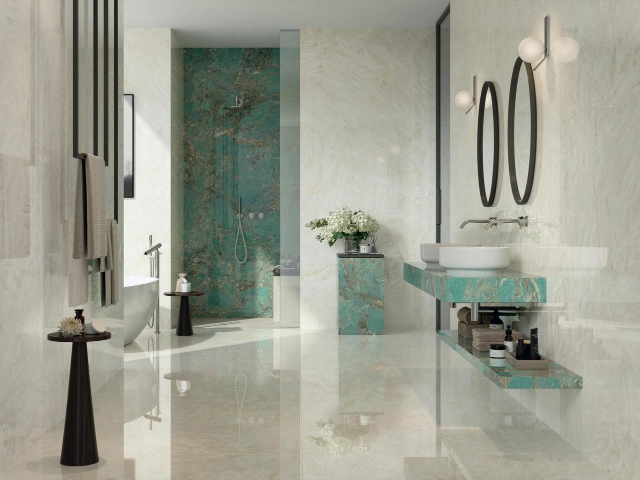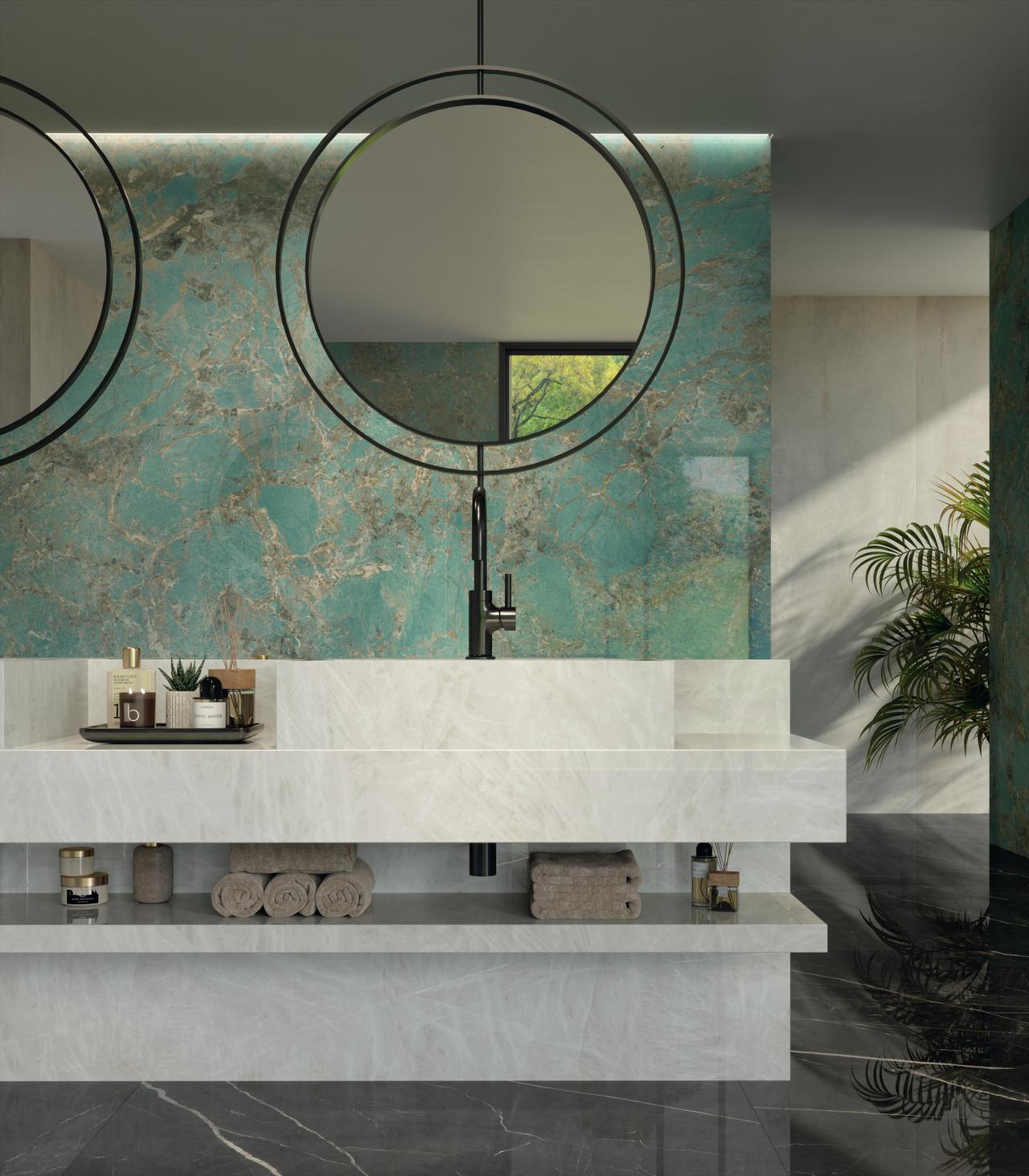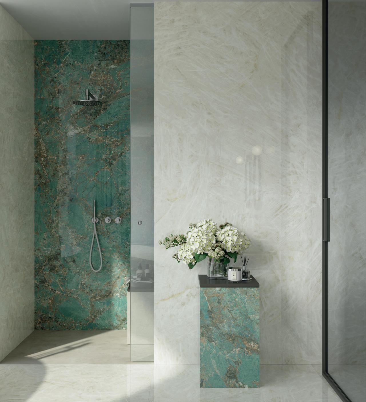 Η σειρά Marvel Gala αποτυπώνει την πολυτέλεια του μαρμάρου μέσα από χρωματισμούς εμπνευσμένους από φυσικές πέτρες. Η απόχρωση Amazzonite συνδυάζει απαλούς τόνους του πράσινου με λεπτές νευρώσεις, δημιουργώντας μια ισορροπία ανάμεσα σε φινέτσα και χαρακτήρα. Η μεγάλη διάσταση 120×278 cm προσφέρει εκλεπτυσμένες, μονολιθικές επιφάνειες, κατάλληλες για τοίχους, δάπεδα ή ακόμη και εντυπωσιακά πάνελ με το φινίρισμα να ενισχύει τη λάμψη και να αναδεικνύει τις λεπτομέρειες του σχεδίου.