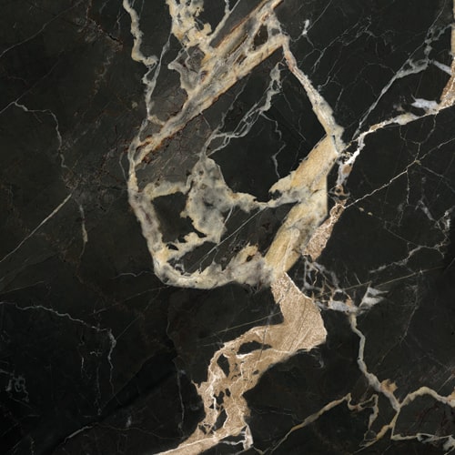 Η σειρά Black Gold είναι ένας εντυπωσιακός σχεδιασμός τύπου μαρμάρου, όπου το βαθύ μαύρο διακόπτεται καθ’ ύψος από λαμπερές χρυσές φλέβες και λεπτές λευκές γραμμές χαλαζία, δημιουργώντας ένα έντονο λυχνικό αποτέλεσμα και αντίθεση υψηλής αισθητικής.