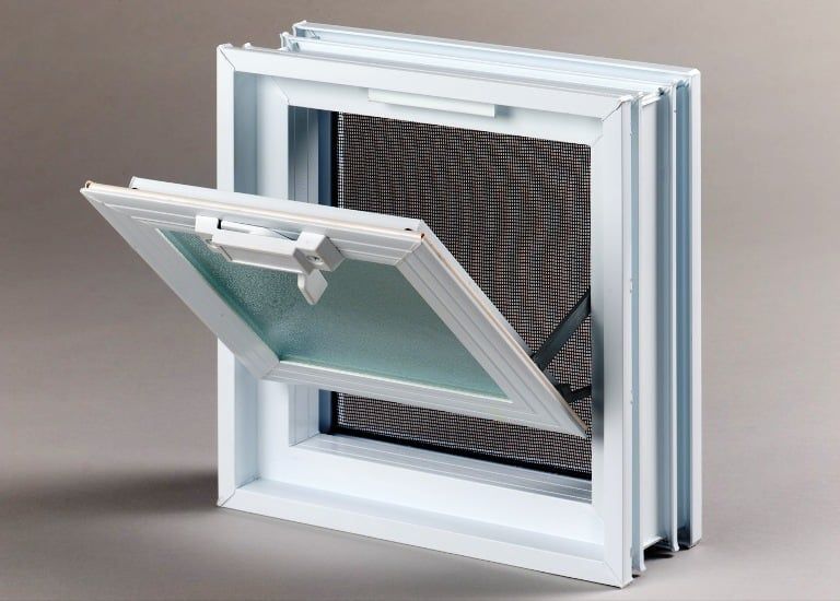 Πλαστικό παράθυρο με διπλό τζάμι και σήτα, κατάλληλο για αντικατάσταση 1 υαλότουβλου διαστάσεων 24×24 cm ή για αυτόνομη τοποθέτηση σε άνοιγμα τοιχοποιίας.