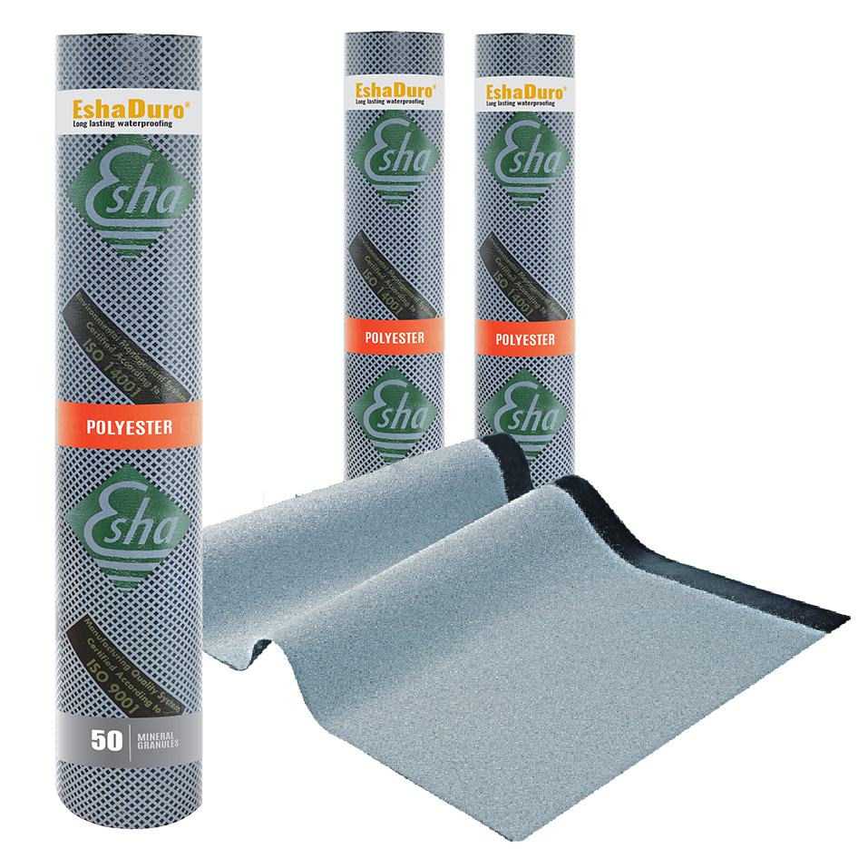 Οι μεμβράνες ESHADURO είναι πλαστομερείς ασφαλτικές στεγανωτικές μεμβράνες, οι οποίες παράγονται από ειδικούς τύπους ασφάλτου και επιλεγμένα πολυμερή υλικά, με βάση το ατακτικό πολυπροπυλένιο (APP). Έχουν κατασκευαστεί ώστε να προσφέρουν αξιόπιστη στεγάνωση και προστασία σε βάθος χρόνου και θερμές κλιματολογικές συνθήκες.