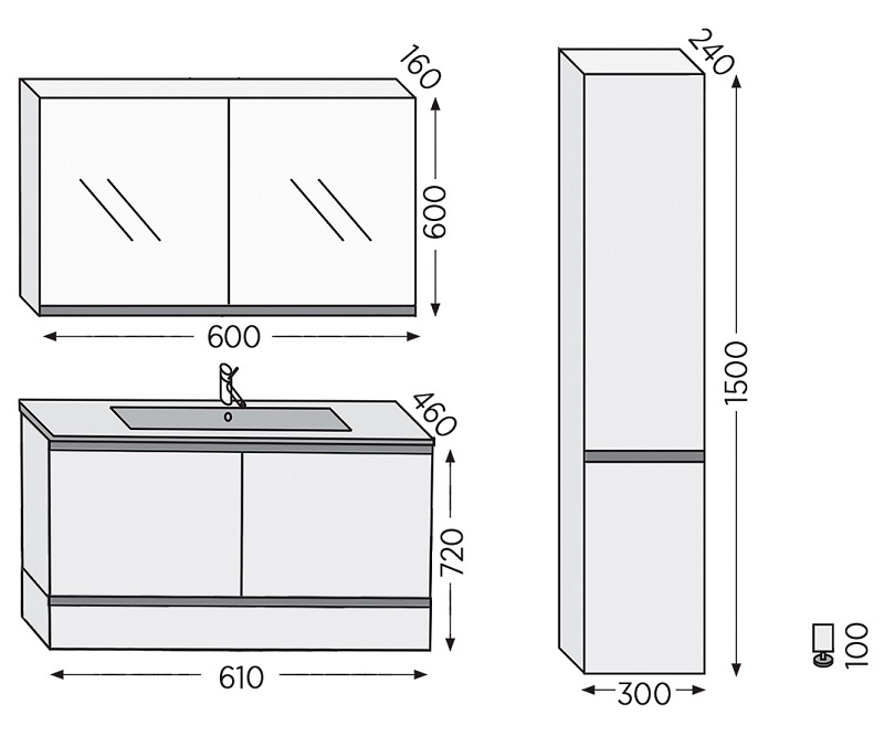 Το σετ μπάνιου αποτελεί ιδανική επιλογή για μικρότερους χώρους, χωρίς να θυσιάζει την αισθητική ή τη λειτουργικότητα. Η βάση με 2 άνω πόρτες και 1 κάτω συρτάρι διαθέτει μηχανισμό Soft Close για αθόρυβο και ομαλό κλείσιμο, ενώ το φινίρισμα laminate Grey προσθέτει ζεστασιά και κομψότητα.