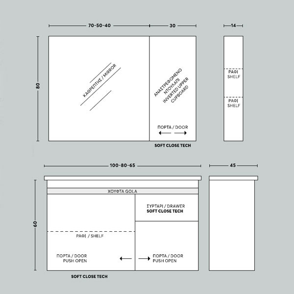 • Άνω Ντουλάπι: Αναστρεφόμενο HOPE upper cabinet (HP3080)