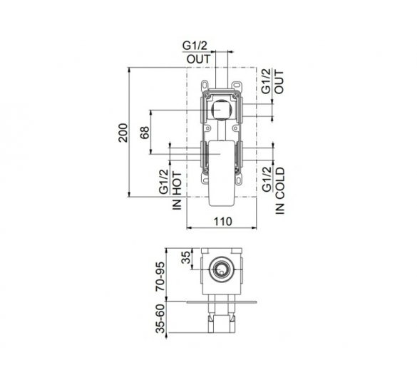 Εντοιχισμένη μπαταρία ντους 2 εξόδων με περιστρεφόμενο εκτροπέα επιτρέποντας εύκολα την αλλαγή νερού μεταξύ των εξόδων , από την σειρά Dark της Fiore.