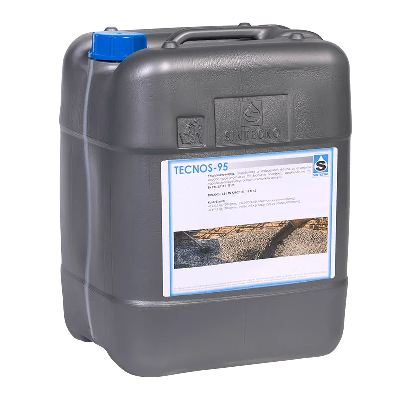 Το TECNOS-95 είναι ένα υγρό, πολυλειτουργικό πρόσμικτο σκυροδέματος, με ιδιότητες ρευστοποίησης και υπερρευστοποίησης, καθώς και επιβράδυνσης της πήξης, ιδανικό για σκυροδέματα με υψηλές απαιτήσεις σε μηχανικές αντοχές, ποιότητα και εργονομία εφαρμογής.