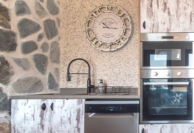 Τα σκούρα χρώματα της πέτρας Άκρον σε συνδυασμό με την ανάγλυφη επιφάνεια προσδίδουν ένα επιβλητικό ύφος στον χώρο.