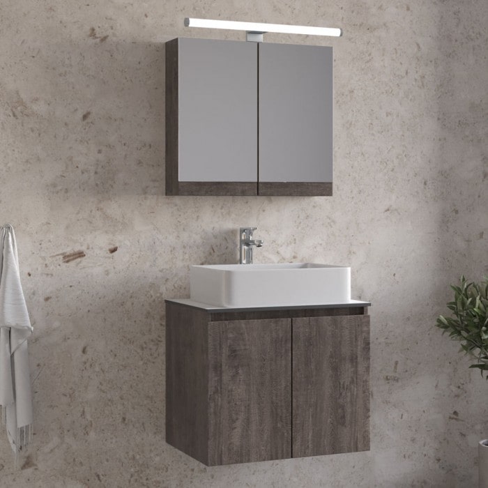 Σετ επίπλου μπάνιου Royal Bath Madrid/60 Grey με καθρέφτη-κρυφοντούλαπο και επικάλυψη