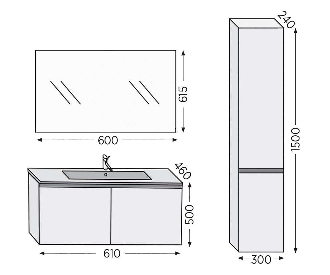 Σετ επίπλου μπάνιου Royal Bath Madrid/60 Grey με καθρέφτη