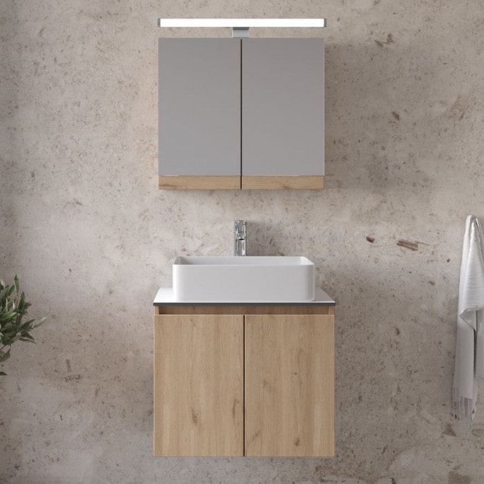Σετ επίπλου μπάνιου Royal Bath Madrid/60 Walnut με καθρέφτη-κρυφοντούλαπο και επικάλυψη