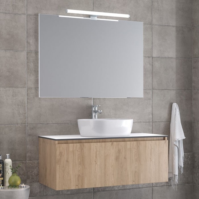 Ο λευκός νιπτήρας από πορσελάνη προσθέτει κομψότητα και διαχρονική αισθητική, η επικάλυψη τύπου COMPACT ενισχύει την αντοχή του επίπλου στην υγρασία, ενώ ο καθρέφτης με αντιθαμβωτική λειτουργία εξασφαλίζει καθαρή εικόνα ακόμη και μετά από ζεστό ντους.