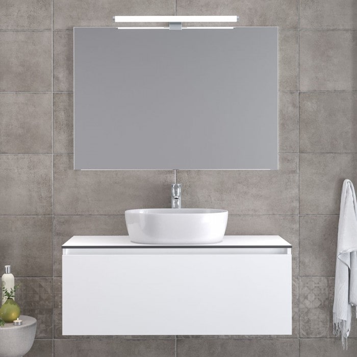 Ο λευκός νιπτήρας από πορσελάνη προσθέτει κομψότητα και διαχρονική αισθητική, η επικάλυψη τύπου COMPACT ενισχύει την αντοχή του επίπλου στην υγρασία, ενώ ο καθρέφτης με αντιθαμβωτική λειτουργία εξασφαλίζει καθαρή εικόνα ακόμη και μετά από ζεστό ντους.
