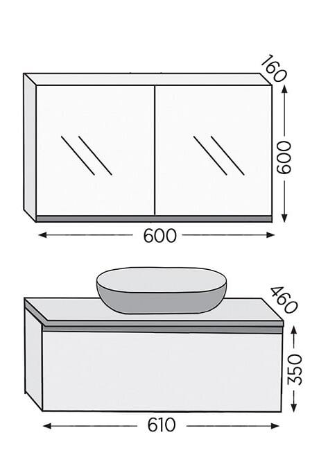 • Καθρέφτη ντουλάπι Μ60 × Β16 × Υ60 cm με 1 ράφι