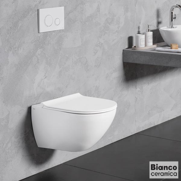 Σετ Λεκάνη επίτοιχη (κρεμαστή) υψηλής πίεσης+ Κάλυμμα , Rimless κρυφή στήριξη 54×35,5×40 επιφάνεια: Γυαλιστερή, χρώμα: Λευκό
