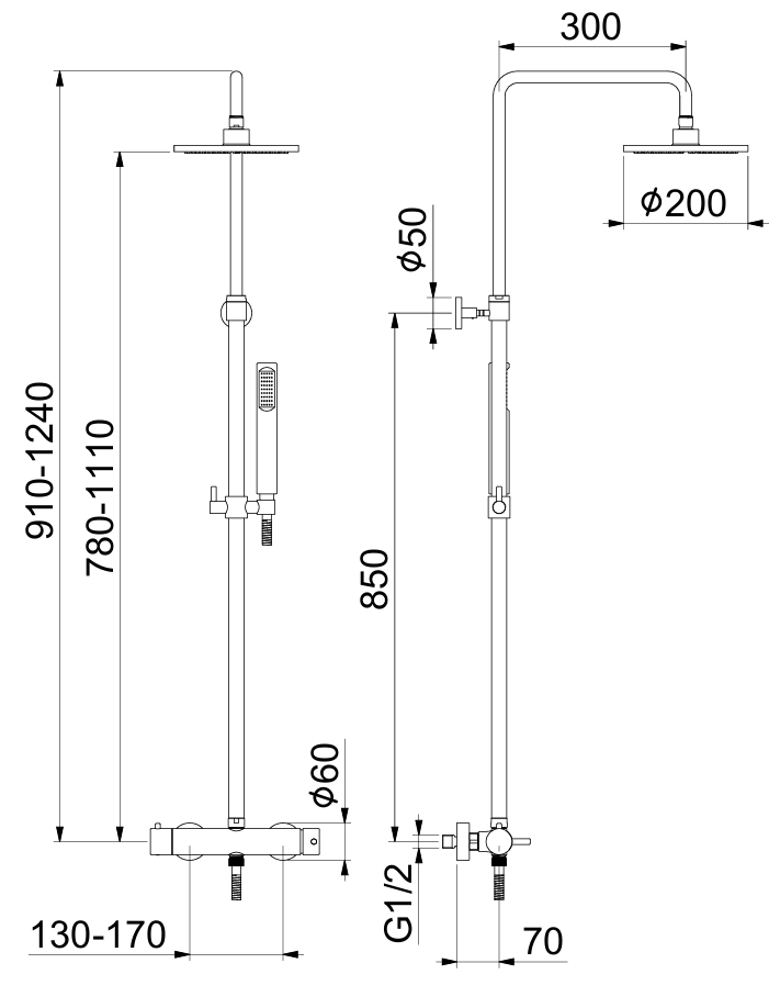 - Ρυθμιζόμενη μπάρα ντους 114 cm για άνεση και ευελιξία