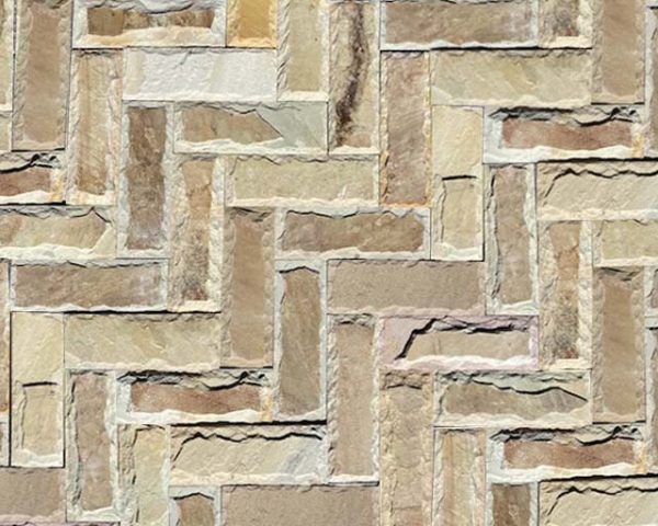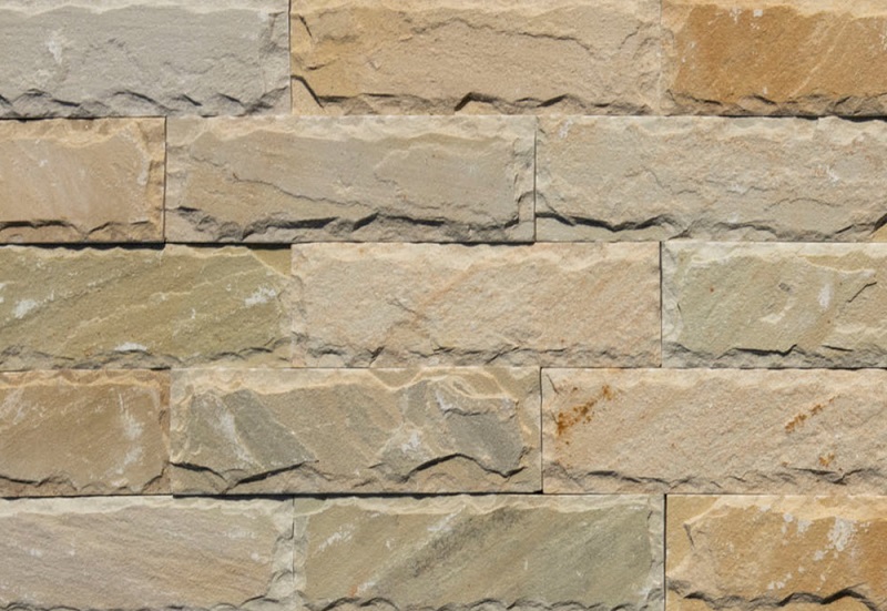 Η σύνθεση απαλών χρωμάτων και η τεχνική του σκαπιτσαρίσματος θέτουν το υλικό ως μια ιδιαίτερη επιλογή για πέτρινη επένδυση.