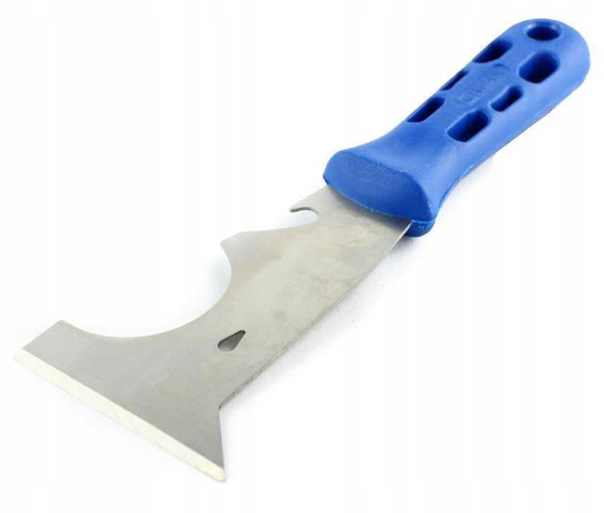 Σπάτουλα πολλαπλών χρήσεων από ανοξείδωτο ατσάλι και λαβή από πλαστικό.