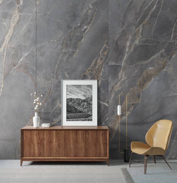Το Velvet Marble R193 αποδίδει την κομψότητα του γκρι μαρμάρου με υφή Peetah, προσφέροντας αδιάβροχη και στιβαρή λύση για εσωτερικές εφαρμογές.