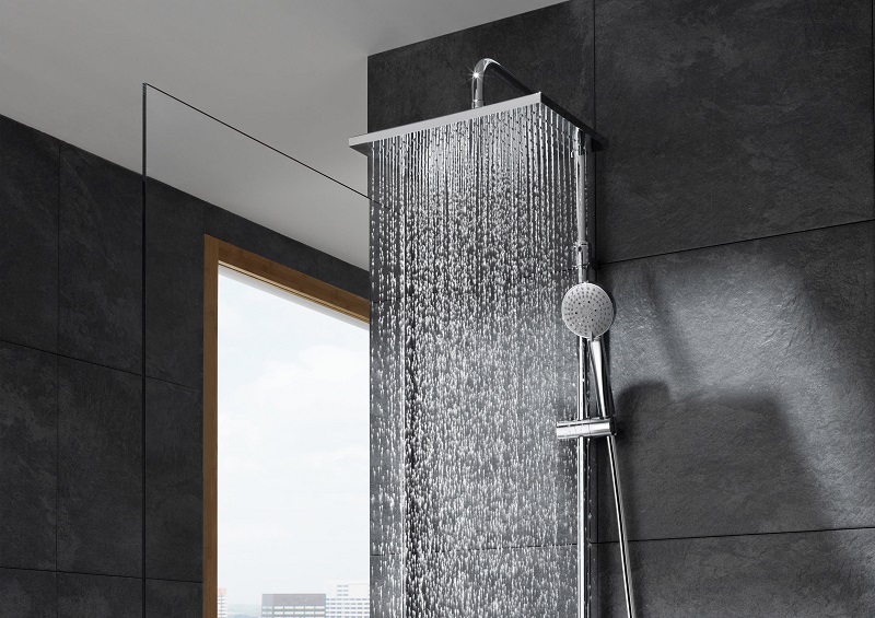 Διαθέτει αναμικτική μπαταρία και τετράγωνη κεφαλή ντους.