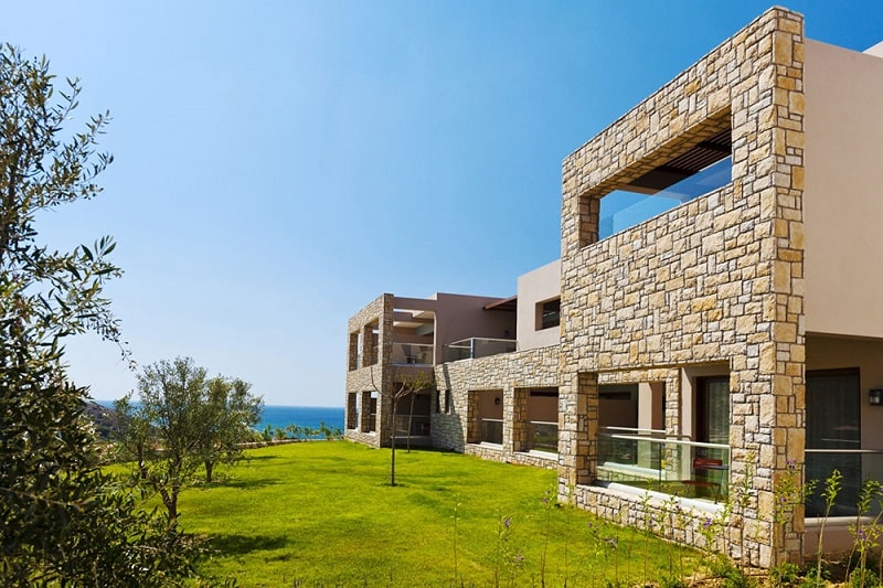 Η Bretagne ξεχωρίζει για την αυστηρά γεωμετρική, τραχιά υφή της, με δομή από ορθογώνια πέτρα που θυμίζει παραδοσιακή λιθοδομή — προσαρμοσμένη σε μια σύγχρονη αισθητική.