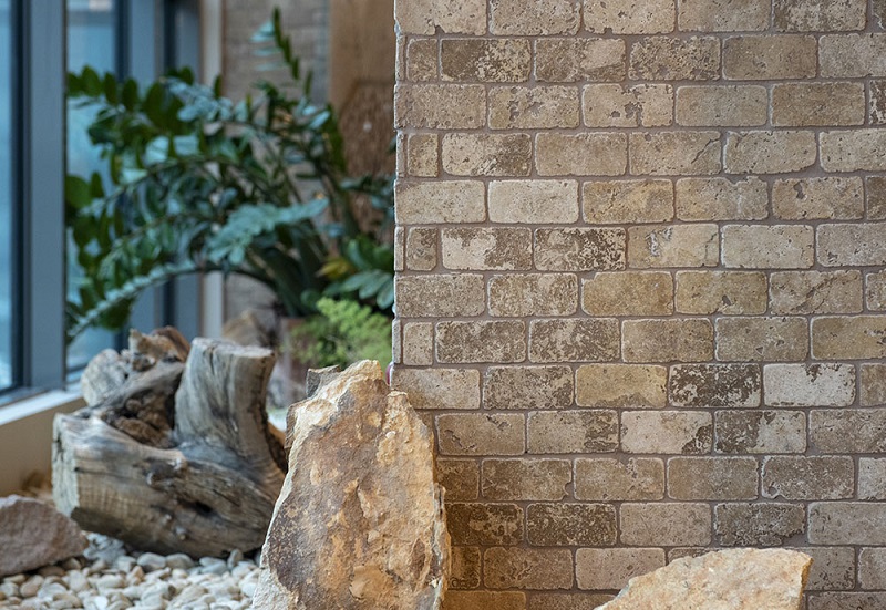 Ο συνδυασμός των χρωμάτων μπεζ-καφέ και της υφής του πορώλιθου, κάνει το ψηφιδωτό Γαία Αντίκ μια διαχρονική διακοσμητική λύση.