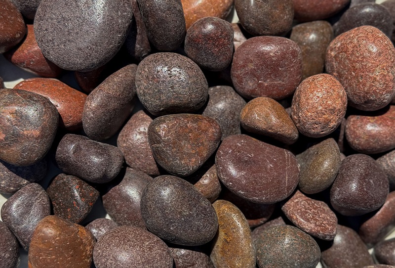 Η επιφάνεια τους παρουσιάζει μια ιδιαίτερη “Γυαλάδα” που τα διαφοροποιεί από τα άλλα βότσαλα. Είναι μοναδικά, όμορφα υλικά σε καφέ χρώμα. Προτείνονται για διαμορφώσεις και διακοσμήσεις εσωτερικών χώρων. Η τοποθέτηση τους είναι απλή και εύκολη.